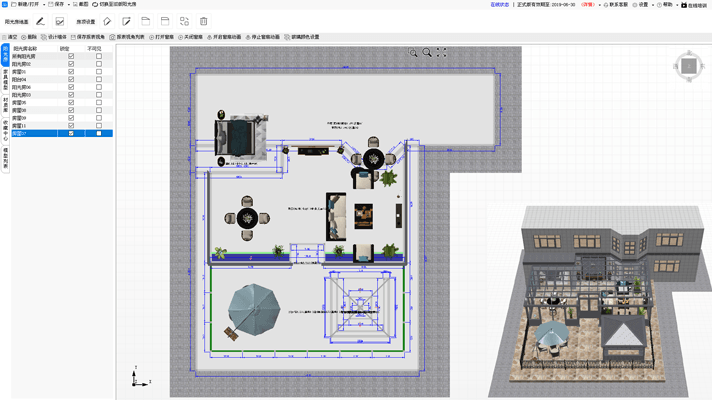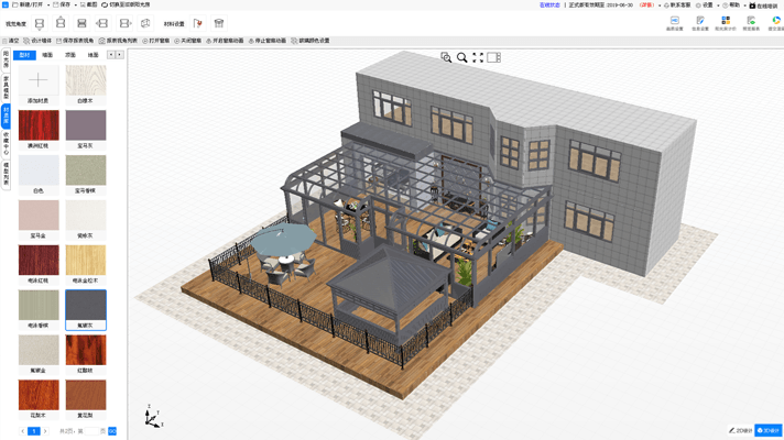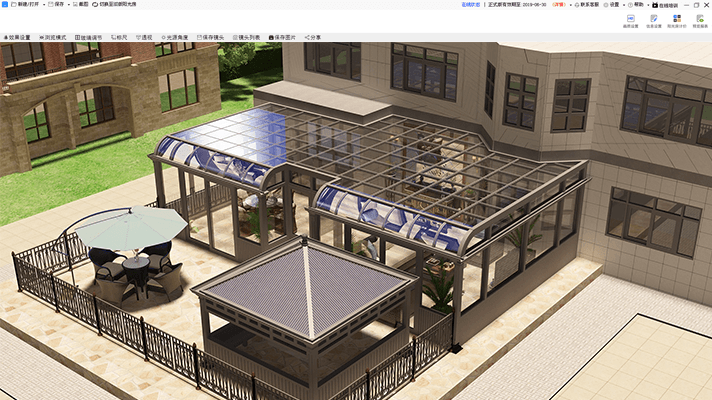 編輯更改陽光房立柱樣式,可更改陽光房型材色卡,房頂樣式,玻璃樣式,地板樣式,墻體樣式等