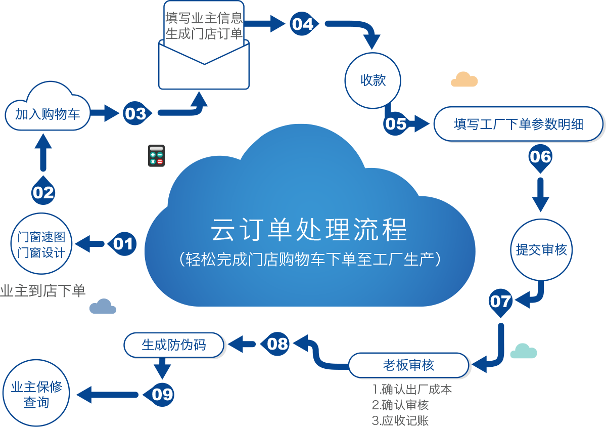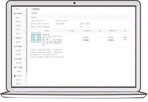 確認(rèn)后可直接通過(guò)云訂單管理中心下單至門窗廠,可查詢訂單信息,和工廠供貨價(jià),以便核對(duì)訂單利潤(rùn)和訂單結(jié)算。